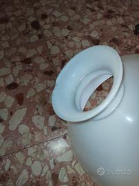 lampadario a petrolio inizio 900.Molto raro elegante e imponente. Sistema a saliscendi.In bronzo e ceramica dipinta a mano,cupolino in opalina, vetro Cristal de Roche. Fregi a foglia d'acanto.Elettrificato. Piccola sbeccatura (quasi invisibile) lato superiore cupolino. Altezza circa cm da 150 a 125, diametro circa cm 40