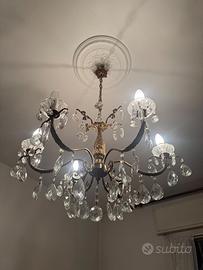 Lampadario vintage a sospensione in ottone e cristallo buone condizioni anni 60