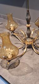 Lampadario vintage a sei braccia in ottone dorato e vetro, anni 50/60