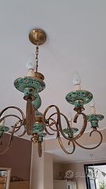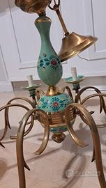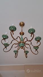 #lampadario #vintage #anni50 #ceramica #dipintoamano #antiquariato #8luci #modernariato #designitaliano #ottone #articolovintage #arredolusso #midcentury #lampadadasoffitto #verde #floreale