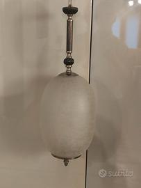 Lampadario Vintage anni 50 con boccia ovale cm 30x20 circa in vetro satinato e lavorato effetto coccodrillo