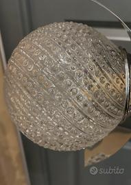 La superficie tridimensionale crea un effetto luminoso scenografico: quando acceso, il vetro rifrange la luce in modo dinamico, valorizzando l’ambiente con giochi di riflessi e profondità. Anche da spento risulta estremamente decorativo grazie alla texture ricca e materica.