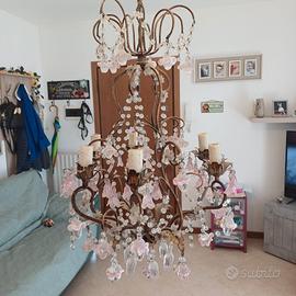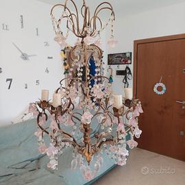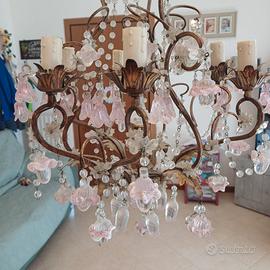Lampadario 8 luci e appliques in ottone e pendenti in murano anni 70
