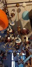 lampadario funzionante più 1 aplik ottone a vetro come da foto tre luci misure 35x35x35 alto compreso gambo 115 il gambo si può modificare al bisogno .non spedisco visione e ritiro a casa mia .messaggio.