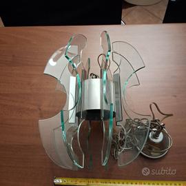 Lampadario vintage composto da lame di vetro trasparente. Vintage, modernariato, space age.