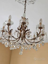 lampadario in bronzo dorato e gocce di cristallo. Perfettamente funzionante e in ottime condizioni. non spedisco