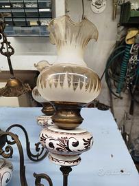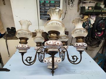 Lampadario vintage in ceramica ed ottone con paralumi in vetro in ottime condizioni generali come da foto. Spedizione disponibile.