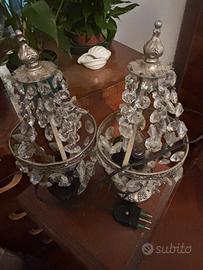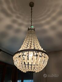 Vendo elegante lampadario vintage a sospensione, completo delle sue abat-jour originali, con struttura in metallo brunito e ricca decorazione in vetro molato. Stile classico Impero, molto scenografico: da acceso crea un bellissimo gioco di luci sul soffitto e sulle pareti, come visibile in foto. Ideale per soggiorno, sala da pranzo o ingresso. Caratteristiche: •Epoca: anni ’50 / ’70 •Materiali: metallo e vetro molato •Abat-jour: presenti e originali •Colore: trasparente con struttura scura •Tipologia: lampadario a sospensione •Buone condizioni generali •Impianto elettrico da verificare/aggiornare (normale per oggetti vintage) 📍 Ritiro a mano preferito 🚚 Spedizione possibile da concordare Lampadario completo, elegante e di grande impatto decorativo, sempre più difficile da trovare con abat-jour originali.