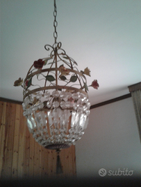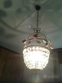 Lampadario vintage con gocce di vetro e roselline smaltate, misura di diametro cm.32, altezza totale dal soffitto cm.100, altezza del solo lampadario senza catena cm.65, predisposto per il montaggio di una lampadina con attacco a vite E14, vendo a euro 145, ritiro e trasporto a carico del compratore oppure posso spedire con pacco postale in contrassegno costo aggiuntivo 15 euro