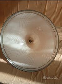lampadario bianco con righine nere. diametro 50 cm. lampadina E27. il saliscendi è un po' ingiallito o da ripulire