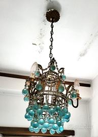 LAMPADARIO VINTAGE CON SFERE DI VETRO AZZURRE