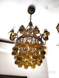 LAMPADARIO VINTAGE CON SFERE DI VETRO GIALLE