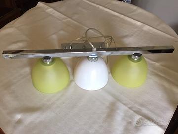 In acciaio e vetri opaline a due colori (vetro incamiciato invertito).
