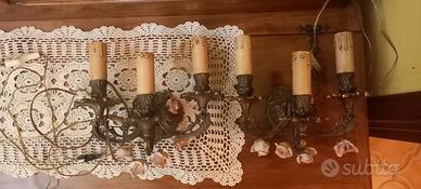 Lampadario vintage con 6 luci decorato con roselline di ceramica. Un braccetto è staccato. Vendo insieme o separatamente n.2 applique a muro.