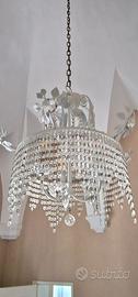 Vendo meraviglioso lampadario a sospensione in metallo bianco con gocce di cristallo trasparente, dal design elegante e lavorato.