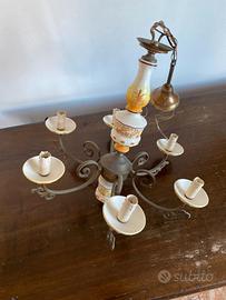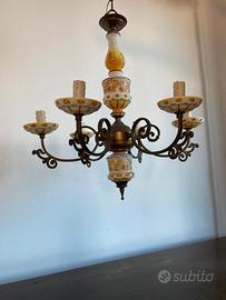 Lampadario vintage a sei luci con elementi in ceramica decorata. Visibile Grosseto città.