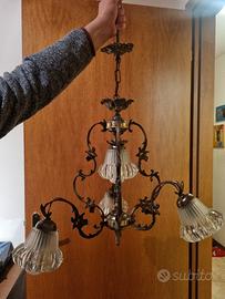 lampadario vintage in bronzo e vetro