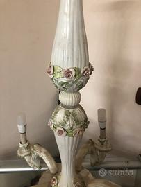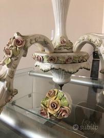 Lampadario a 5 luci led in Capodimonte conservato e parzialmente restaurato. Supporti, luci led ed impianto elettrico nuovi.