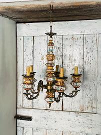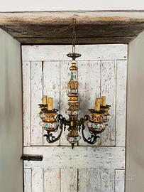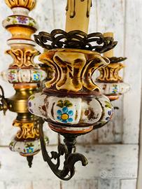 Lampadario vintage in ceramica e ottone. Cinque punti luce. Non presenta sbeccature o difetti. Perfettamente funzionante.