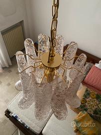 Vendo elegante lampadario vintage in vetro di Murano, realizzato a mano, modello artistico con etichetta originale “lavorazione a mano arte muranese”. 💡 Stile: Murano, design anni ’60-’70, perfetto per arredamento vintage, retrò, classico o moderno di pregio 🔸 Struttura in metallo dorato di alta qualità 🔸 Diffusori in vetro lavorato a scaglie con sfumature ambrate e trasparenti 🔸 Elementi in vetro sagomati con design ondulato e lavorazione artigianale 🔸 Completo e funzionante, ideale per salotto, camera da letto o ingresso 🔸 Condizioni eccellenti, vetri integri, oggetto originale d’epoca Prezzo trattabile se ritiro a mano