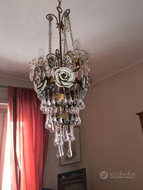 Lampadario vintage in cristallo con rose