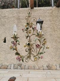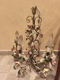 lampadario vintage in ferro battuto e fiori in ceramica colorati. Oggetto di ottima fattura ed in ottime condizioni. Peso 2,5 kg. Disponibile per qualunque domanda o dettaglio