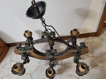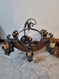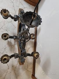 Vendo lampadario vintage in ferro battuto e legno,misure 65x45