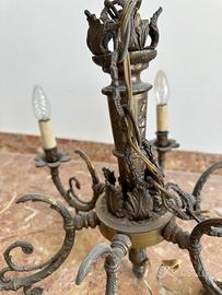 Il lampadario è completo di catena e rosone per il soffitto (come da foto). Presenta normali segni del tempo coerenti con l’età, che ne valorizzano il fascino vintage. Impianto elettrico da verificare/aggiornare secondo le proprie esigenze.