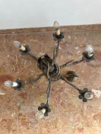 Vendo elegante lampadario vintage a 6 luci in ferro battuto, dal design classico e raffinato. Struttura solida con bracci decorati e portacandele a forma di fiore, ideale per salotto, sala da pranzo o ambiente rustico/classico.