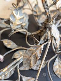 Elegante lampadario vintage in stile floreale, realizzato in metallo con finitura antichizzata e decorazioni in ceramica.