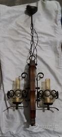 Lampadario tronchetto a 2 luci vintage anni 60-70 in ferro battuto e legno misure: h 102 diametro 44 Ottime condizioni Euro 30