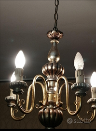 Vendo x trasloco bellissimo lampadario in legno dorato a 5 bracci e luci in ottime condizioni. Per informazioni chiamare al numero 3280172497 o tramite WhatsApp o sms. No e-mail grazie.