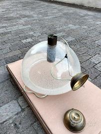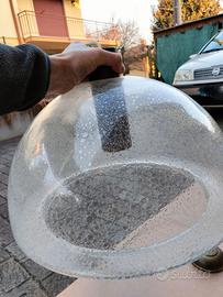 Lampadario a globo in vetro trasparente con superficie puntinata effetto “bubble”.