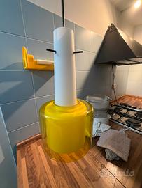 La struttura è composta da un diffusore esterno in vetro colorato (giallo) e un elemento interno o superiore in vetro satinato bianco.