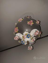 🌸 Lampadario vintage in vetro satinato con rose in porcellana 🌸