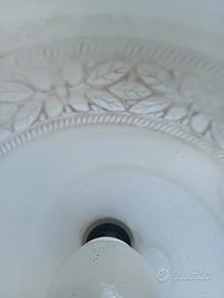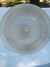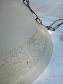 Vendo elegante lampadario vintage in vetro smerigliato, decorato con motivo floreale in rilievo.
