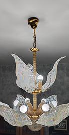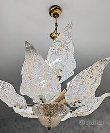 Vendo lampadario vintage in vetro artistico stile Murano, con lavorazione iridescente e struttura in ottone.