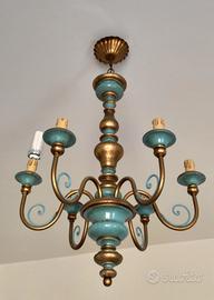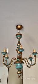 Vendesi lampadario vintage anni 50 in legno con parti dorate a 6 braccia. Possibilità consegna a mano su Roma o Cerveteri.