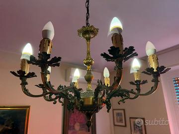 Lampadario vintage in ottone e bronzo