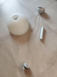 Vendo lampadario vintage modello "Tre Ci Luce Gaia" in vetro opaco con base in alluminio satinato, e contrappeso per regolazione in altezza.