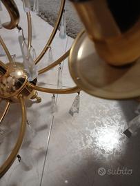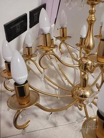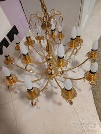Vendo elegante lampadario a sospensione in stile classico a due livelli, con struttura a 12 bracci finitura color oro. Includo nel prezzo tutte le 12 lampadine. Arricchito da pendenti in vetro. Stato dell'oggetto: Il lampadario è funzionante. Segnalo la mancanza di alcuni ciondoli (foto annessa).