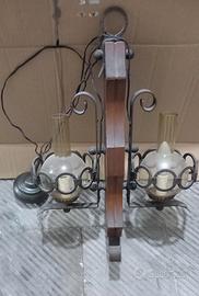 Lampadario tronchetto a 2 luci vintage anni 60-70 in ferro battuto e legno misure: h 102 diametro 44 Ottime condizioni Euro 30