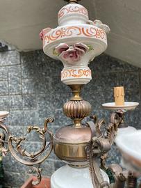 Lampadario vintage ottone e ceramica + 2 abat jour