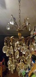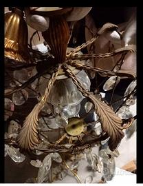 Lampadario costruito con struttura in filo e foglie d'ottone i pendagli sono in cristallo , la luce è centrale. Vista l'eleganza e particolarità dell'oggetto, può essere usato in qualsiasi ambiente con qualsiasi arredo. Pezzo unico Non spedisco