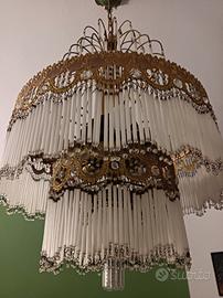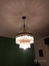 Vendo lampadario vintage come in foto. Alloggio lampadina centrale + corona lampadine superiore, molto luminoso. Elementi tubulari in vetro opaco. Ritiro a mano zona Padova.