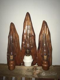 Lampadari in legno tre cime di lavaredo con porta candela ad olio. Molto robusti
