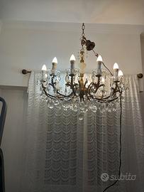 lampadario vintage restaurato 12 luci filo elettrico centrale e candele nuove cristalli perfetti euro 140