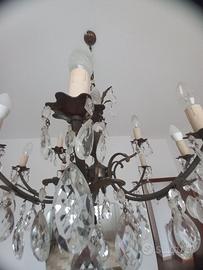 LAMPADARIO VINTAGE, ANNO 1960, IN FERRO E GOCCIE DI CRISTALLO