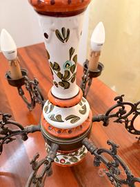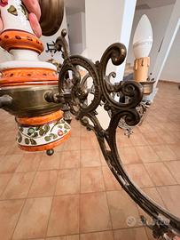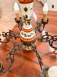 Lampadario in Ceramica e Otttone funzionante con sei porta lampada con attacco piccolo