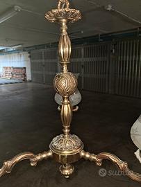 LAMPADARIO IN OTTONE INTARSIATO 3 LUCI OTTIME CONDIZIONI